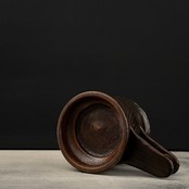 不揃いな間伐材を貼り合わせ、火で炙ることで生まれる、クラッキングや燃え朽ちたような形状変化。そして、漆との相性が良いコーヒー豆を使った蒔地で強度と深みを加えることで、陶磁器とはまた違った、自然が作り出す偶然の美しさを表現できたと考えています。