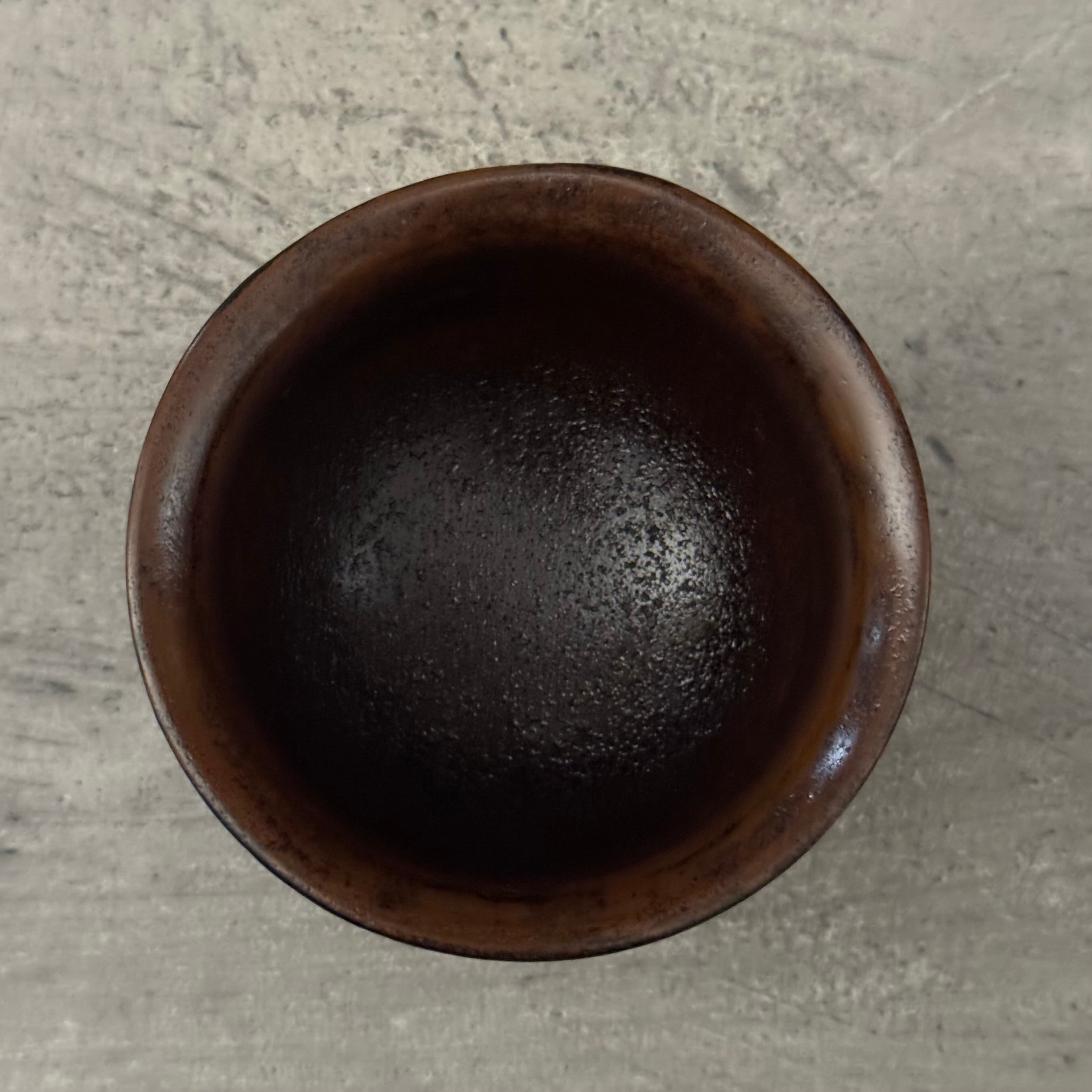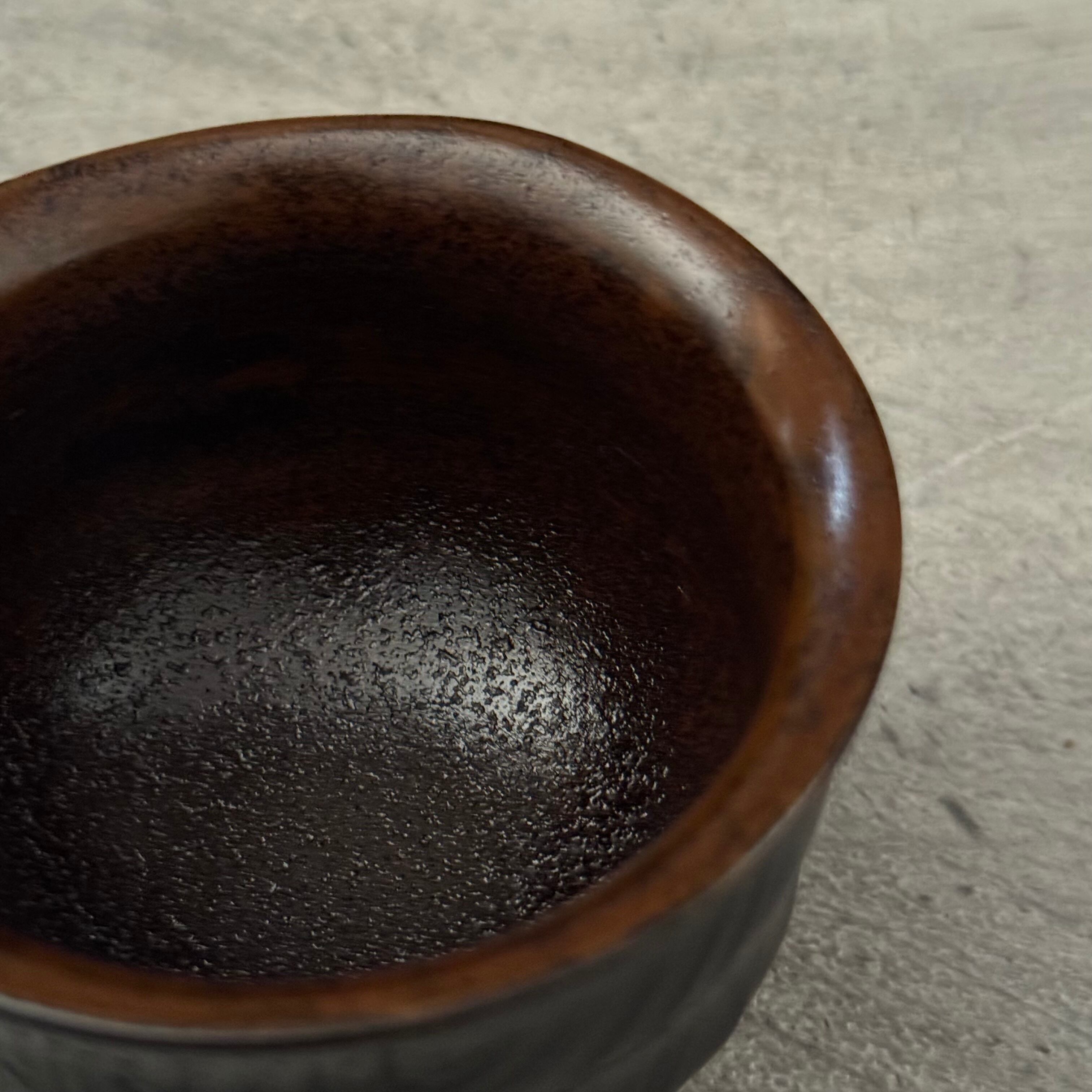 不揃いな間伐材を貼り合わせ、火で炙ることで生まれる、クラッキングや燃え朽ちたような形状変化。そして、漆との相性が良いコーヒー豆を使った蒔地で強度と深みを加えることで、陶磁器とはまた違った、自然が作り出す偶然の美しさを表現できたと考えています。