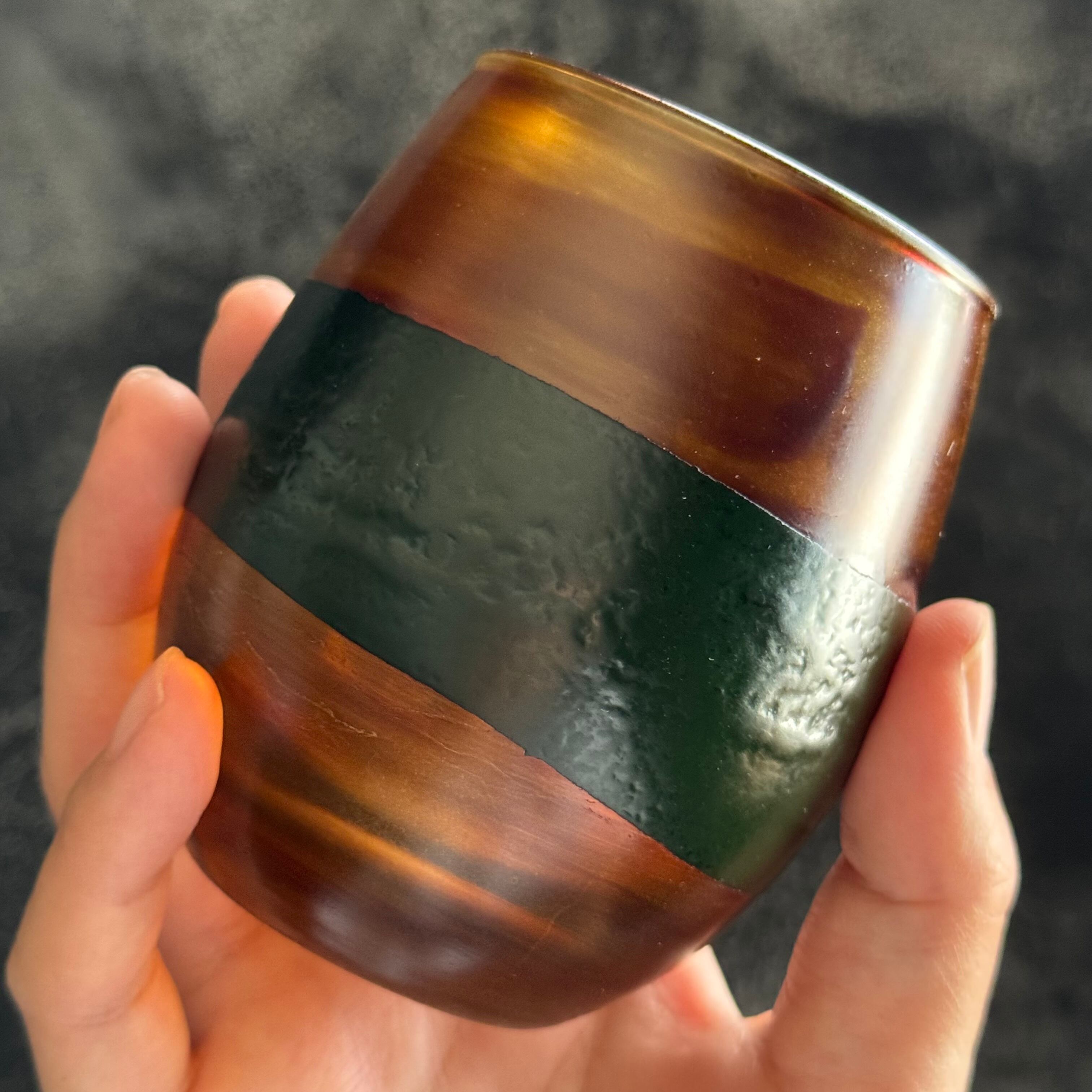 深い色合いの漆が時間と共に味わいを増し、飲み物を引き立てます。手に馴染む形状で、贅沢なひとときを堪能できるアイテムです。