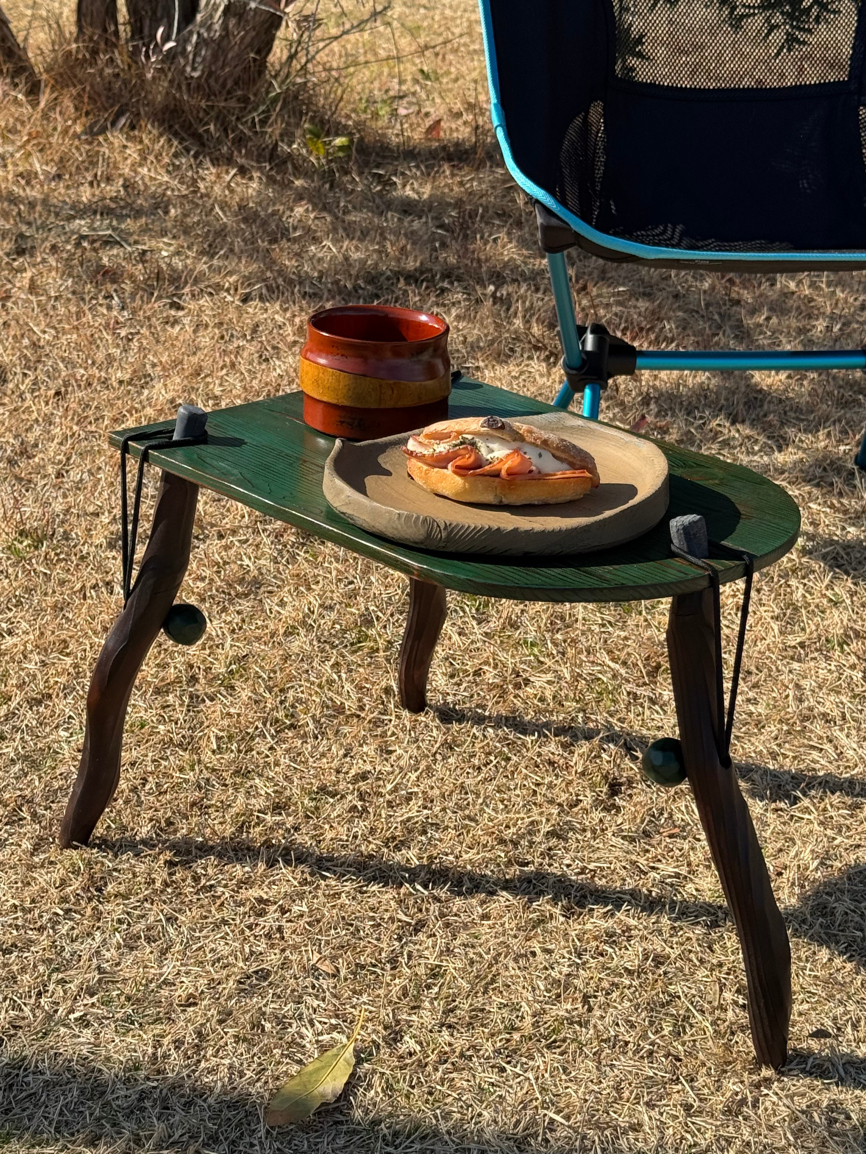 木を焼き、漆を重ね、三本脚で大地に立つ小さなテーブル