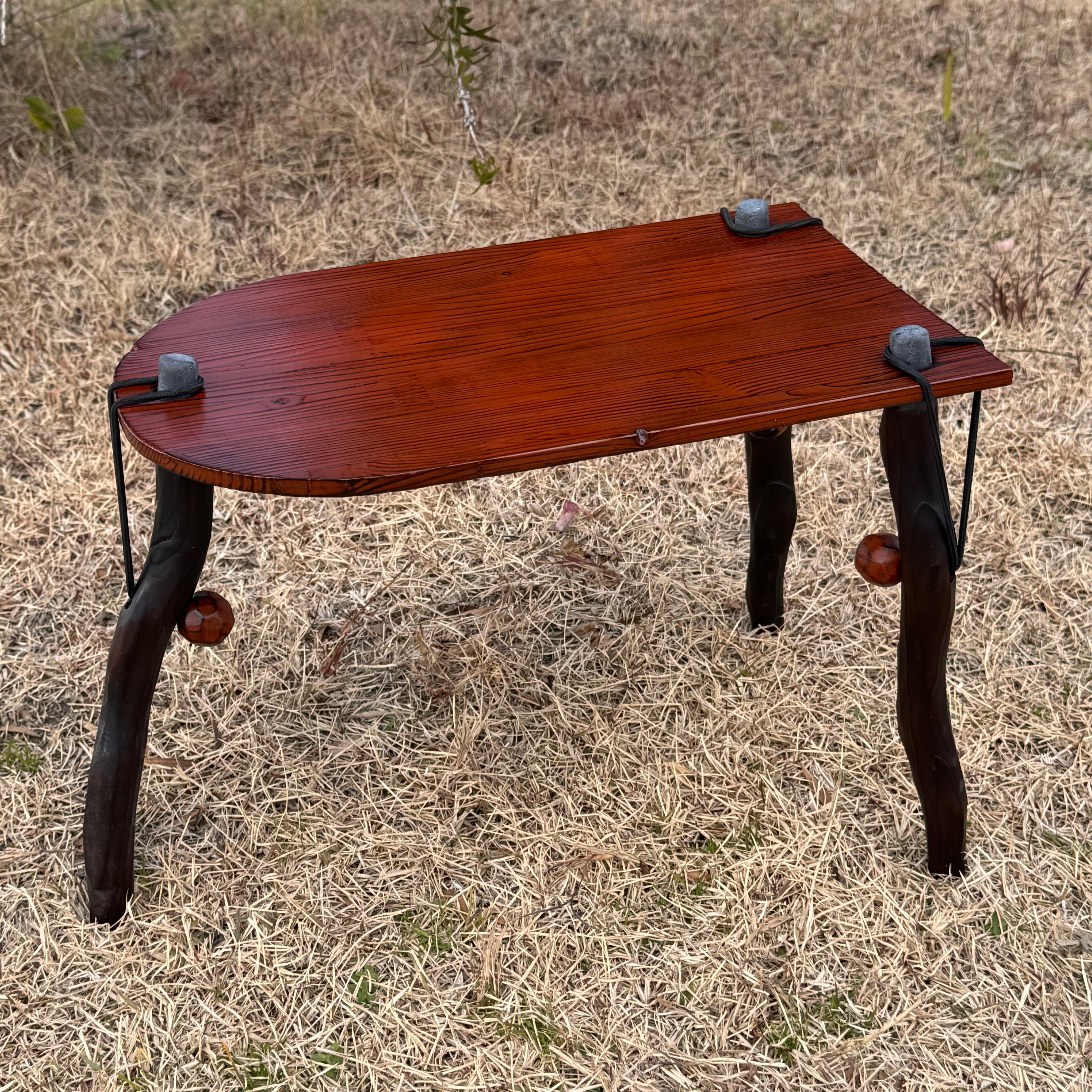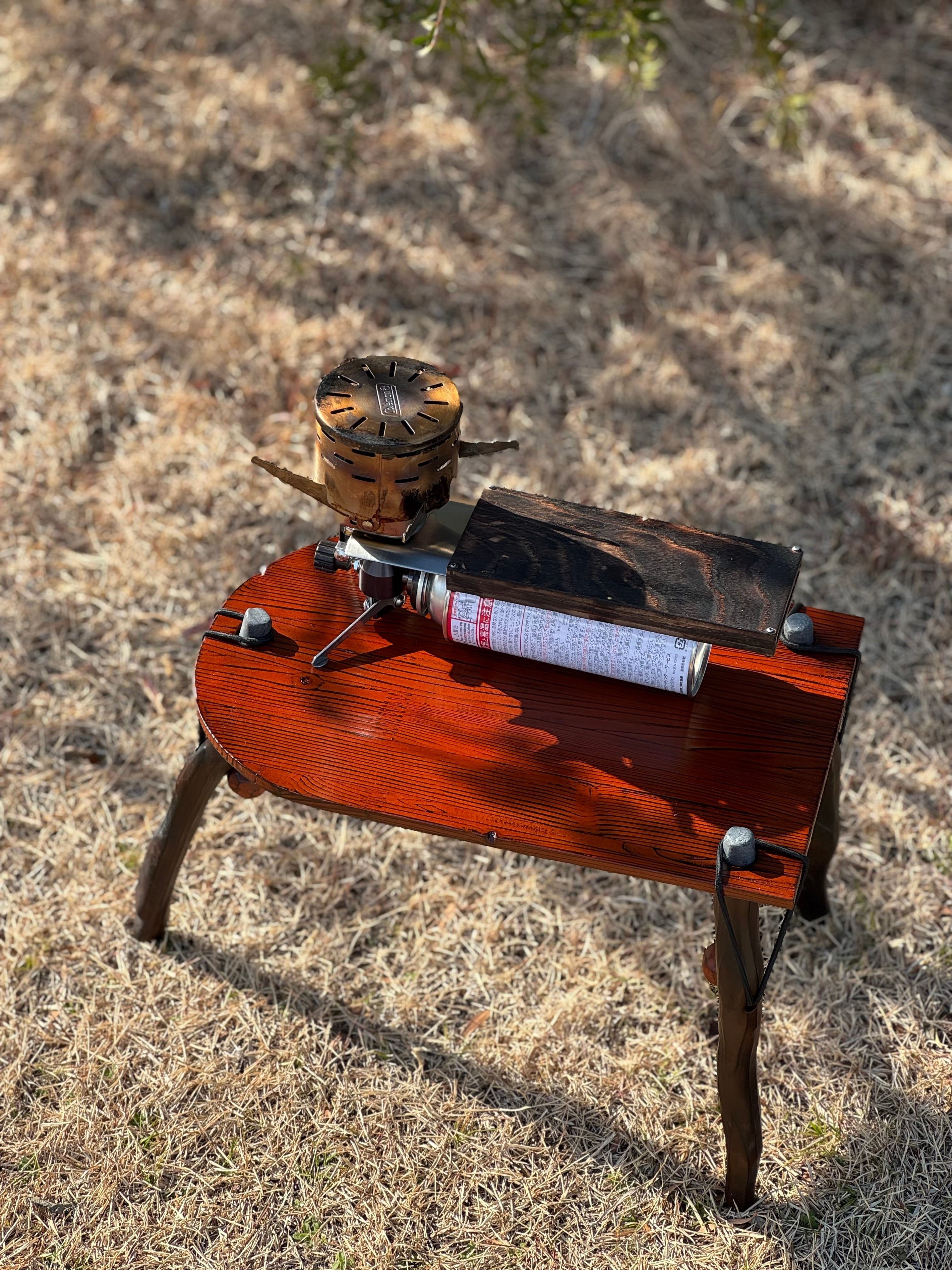木を焼き、漆を重ね、三本脚で大地に立つ小さなテーブル
