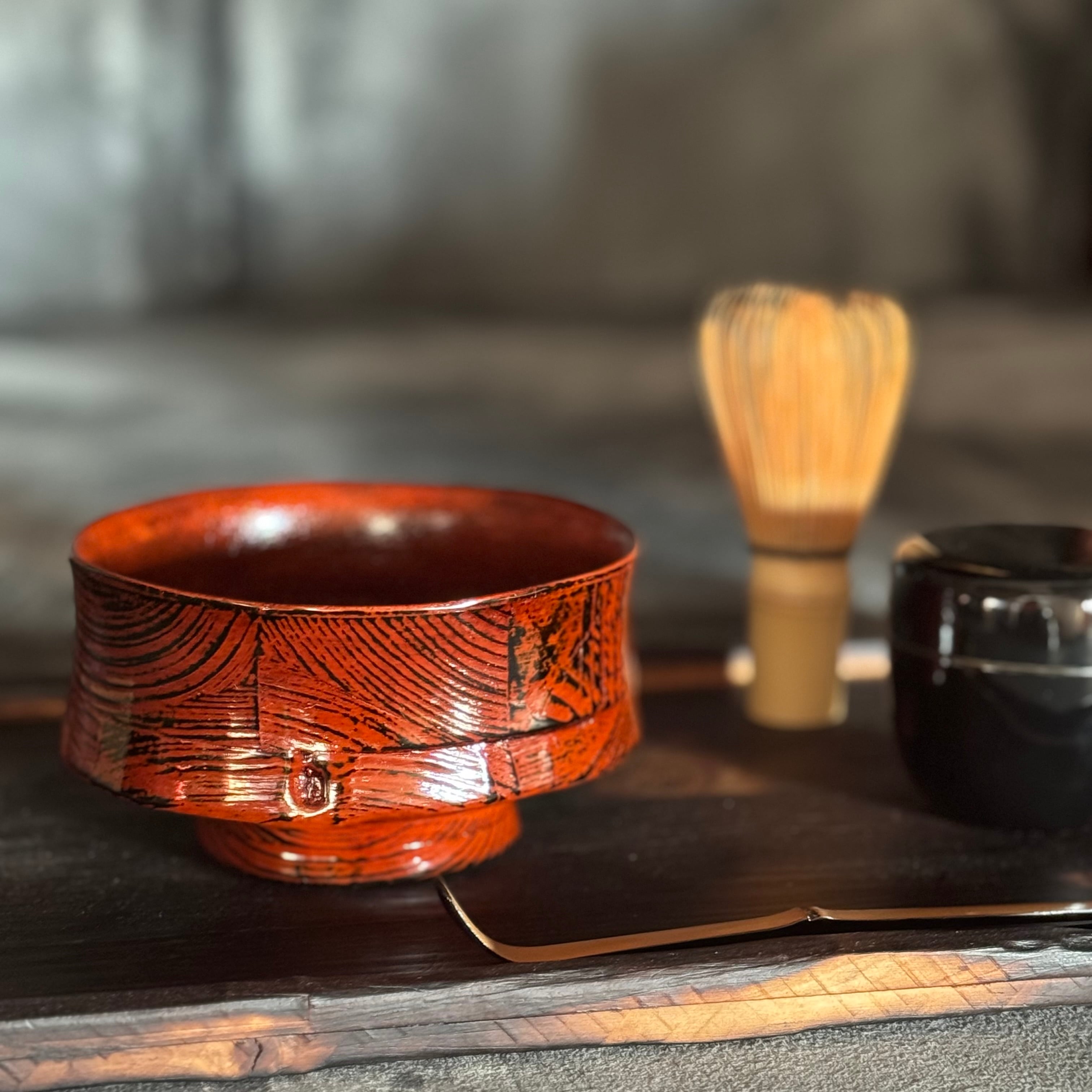焼文木器 抹茶椀(根来塗)【壱】